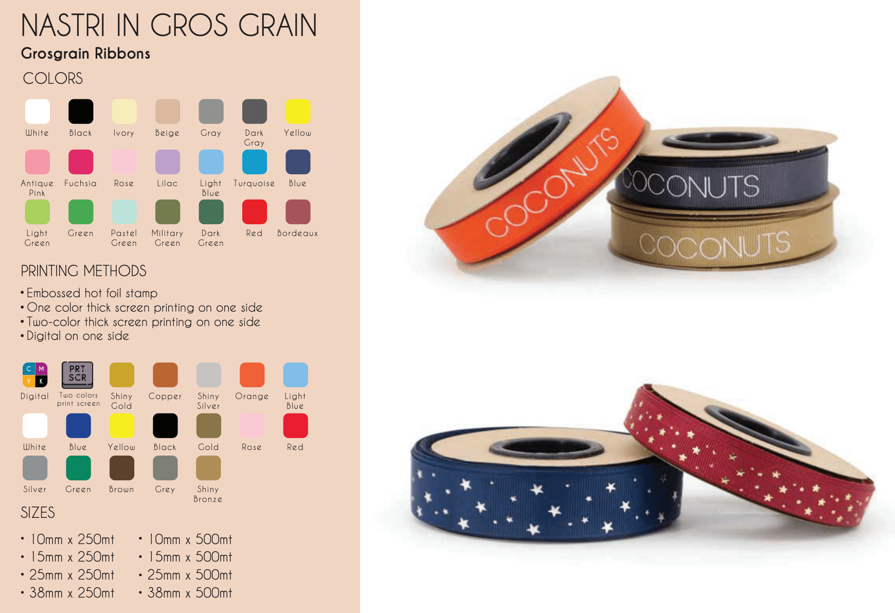 Nastrini personalizzati in Gros Grain - disponibili da 250 m.