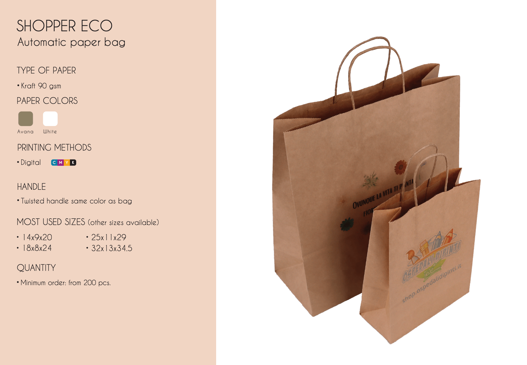 Shopper non risvoltata Eco con maniglia ritorta, carta Kraft 90 gr.