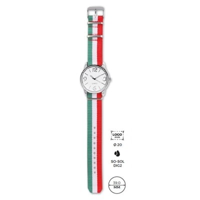 - Cassa in metallo, cinturino in nylon nel tricolore Italiano.