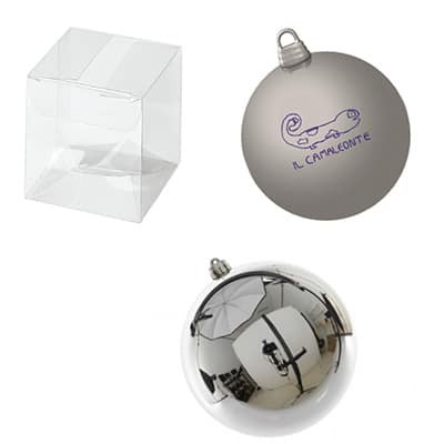 PALLINE NATALIZIE 80 MM IN PLASTICA ARGENTO A SPECCHIO