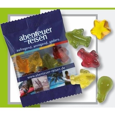 Ogni bustina da 10g contiene una selezione di forme standard e può essere personalizzata con il tuo logo o messaggio. La bustina è disponibile in versione trasparente o bianca, offrendo la massima visibilità al prodotto o al tuo design. Con una scadenza di 12 mesi e una consegna stimata in 30 giorni lavorativi, sono la soluzione ideale per pianificare le tue promozioni con largo anticipo.